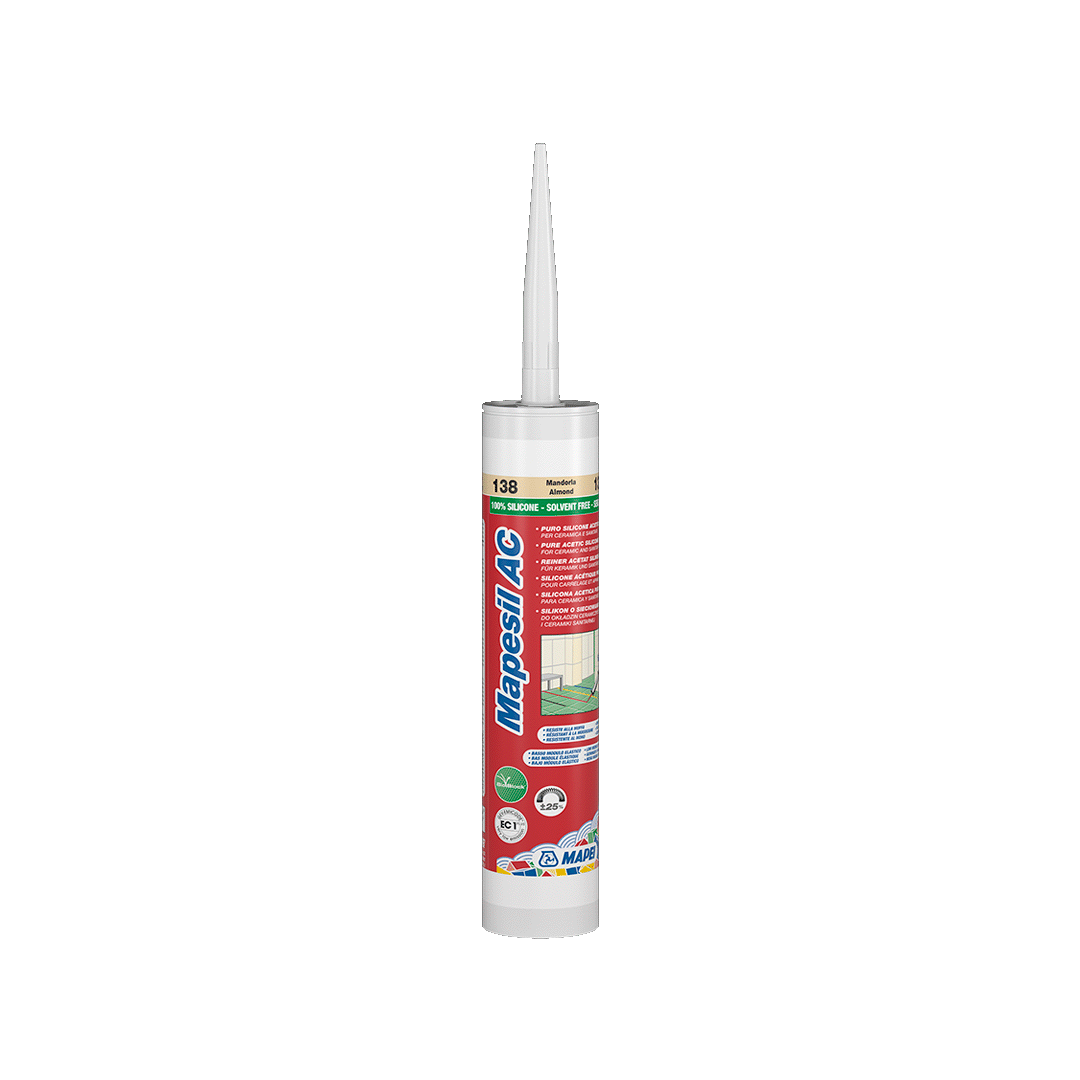 Mapesil AC jest jednoskładnikową masą silikonową, uszczelniającą, przezroczystą lub kolorową, o sieciowaniu octowym, nie zawierającą rozpuszczalników. Mapesil AC ma postać tiksotropowej, łatwej w nanoszeniu pasty, którą można stosować na powierzchniach poziomych, pionowych. Wiąże przy udziale wilgoci pochodzącej z powietrza, tworząc elastyczny materiał o następujących właściwościach: