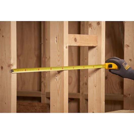 - Zaczep mierniczy na taśmie umożliwia dokładny pomiar wewnętrzny i zewnętrzny